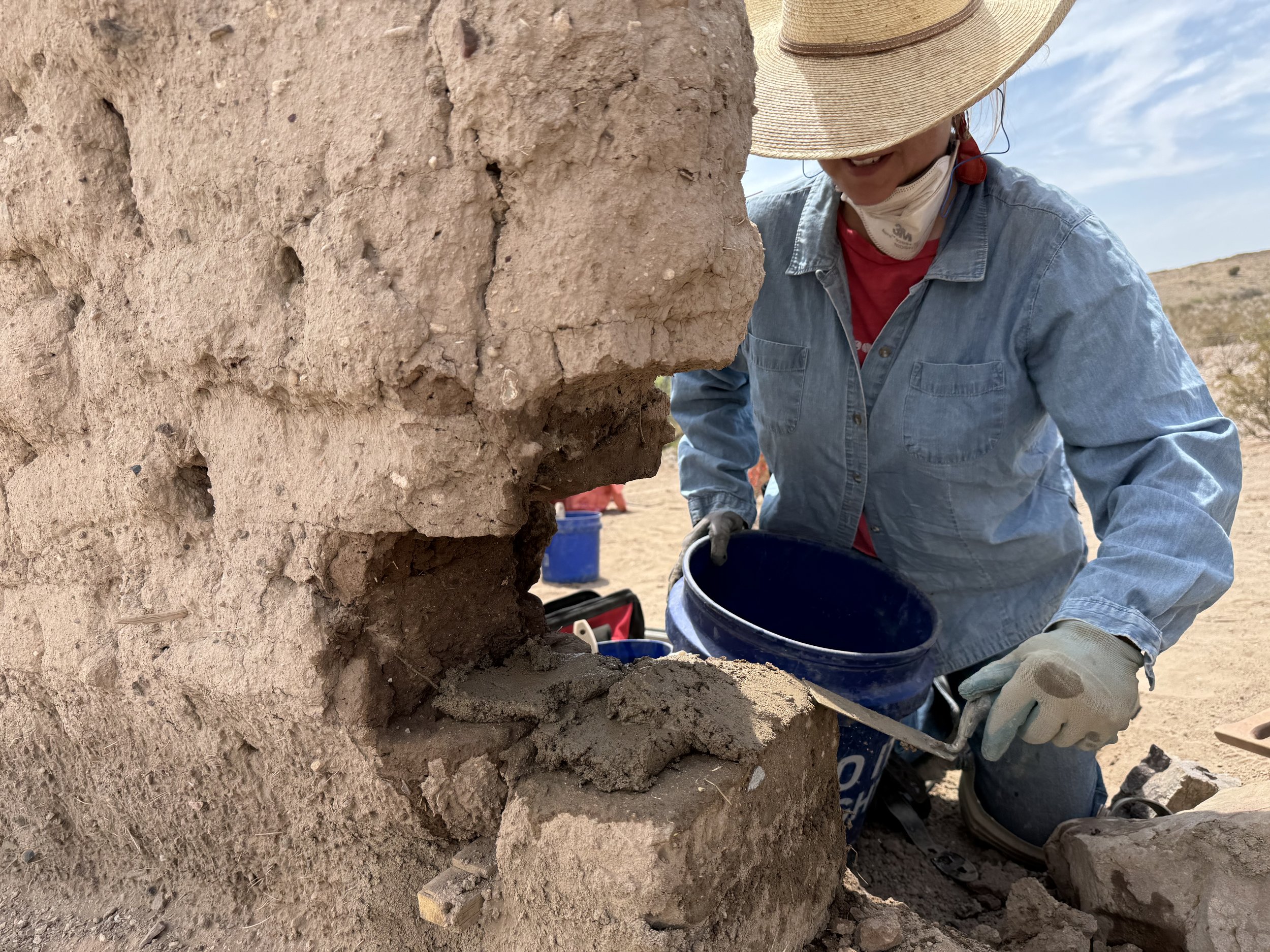 Over the course of four in person workshops and one adobe making workshop, Cornerstones volunteers and interns were trained in adobe making, material analysis, and ruins stabilization and preservation. Because of the ways in which remaining walls at the fort had eroded, measures were necessary to prevent collapse and further deterioration of the standing fragments. Participants used various methods to stabilize the walls, including stitching and basal repairs, carving out sections of unstable wall and replacing them with new adobes, cut to size. Since the standing ruins are all exposed wall fragments with no roof or protective covering, sacrificial earthen plaster coats were applied to the walls in an effort to minimize the impacts of moisture and weather to the remains.