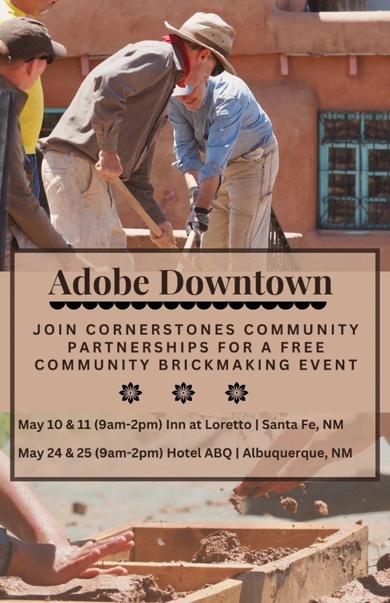 In celebration of National Historic Preservation Month, Cornerstones partnered with the National Hispanic Cultural Center to host our annual Adobe Making event! Held at the national Hispanic Cultural Center, approximately 40 people joined us in a conversation about adobe making, soil selection, mixing methods, and preservation techniques.