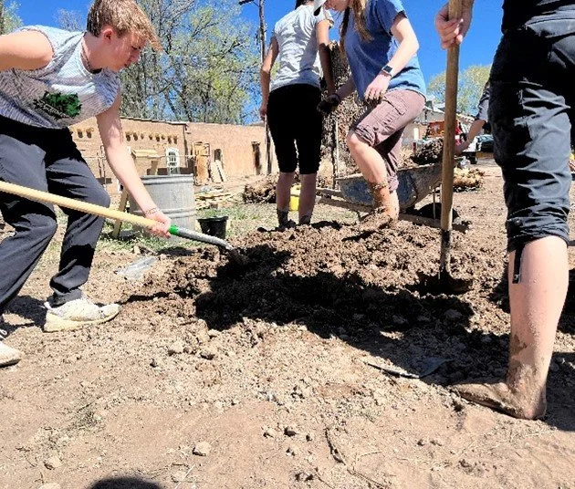 Every year, Cornerstones is lucky to receive volunteer support from Wellesley Village Church High School Service Project - youth participants come from Massachusetts to help with our projects. We worked at the Casita Desiderio work site at Plaza del Cerro in Chimayó. We dismantled a shed and saved all the good materials- roofing, decking, 2/4s, 2/6s, plastic tarps and moved it all to the Reyes/Ortega site nearby. We also moved all the good adobe that Wellesley participants had made in the past, stacked them and covered them with the old, shed roofing. We learned how to mix fresh adobe and made new adobe bricks. A good time was had by all, lessons learned, and much needed labor and love given to this project. Thank you, Wellesley youth and adults!