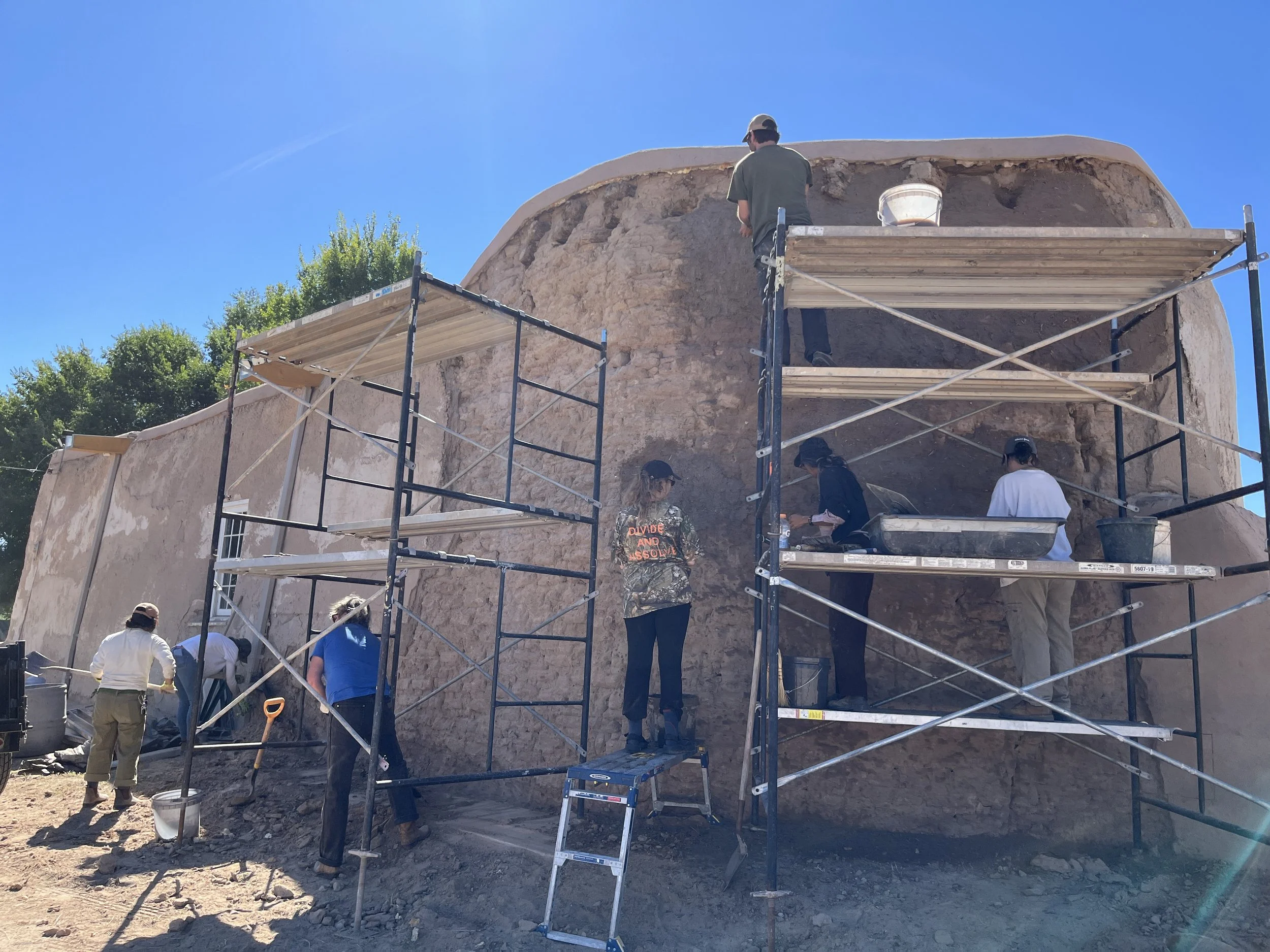 Throughout the duration of this project, volunteers from all over New Mexico traveled to help with the various stages of repair. Students from the Santa Fe Community College Adobe Construction Basics class also joined for several days.