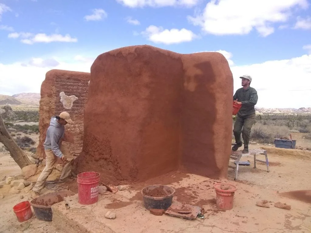 In 2021, we removed the deteriorated lime plasters and applied the earth plaster to the walls. Earth plasters–clay, sand, and straw–are traditionally used as a shelter coat to protect the adobes underneath while providing maximum “breathability”, or vapor permeability. Our return trip in 2022 focused on applying another coat of earthen plaster. Guided by our Lead Plasterer, Angela Francis, the crew replastered the walls alongside local volunteers, NPS staff, and park interns. This training was intended to set up the park with the tools and experience needed to patch or work on the walls when needed. We are continuing to monitor the walls and will return for the cyclical maintenance of remudding when needed.
